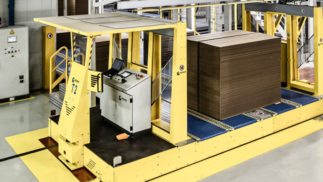 The Dücker Conveyor Systems is the market leader in material handling systems for the paper and corrugated industry. Dücker can layout your complete corrugated plant with reel handling, corrugator take-off, fully automatic WIP area, prefeeders, loadformers, palletizers, sheetline and finished goods handling using our own ASCOR software.